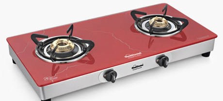 Crystal Marbello 2B Toughened glass cooktop with red marble finish 2 high efficiency brass burners Brushed matt finish stainless steel base Euro coated pan supports Stainless steel drip trays Auto ignition (Optional)